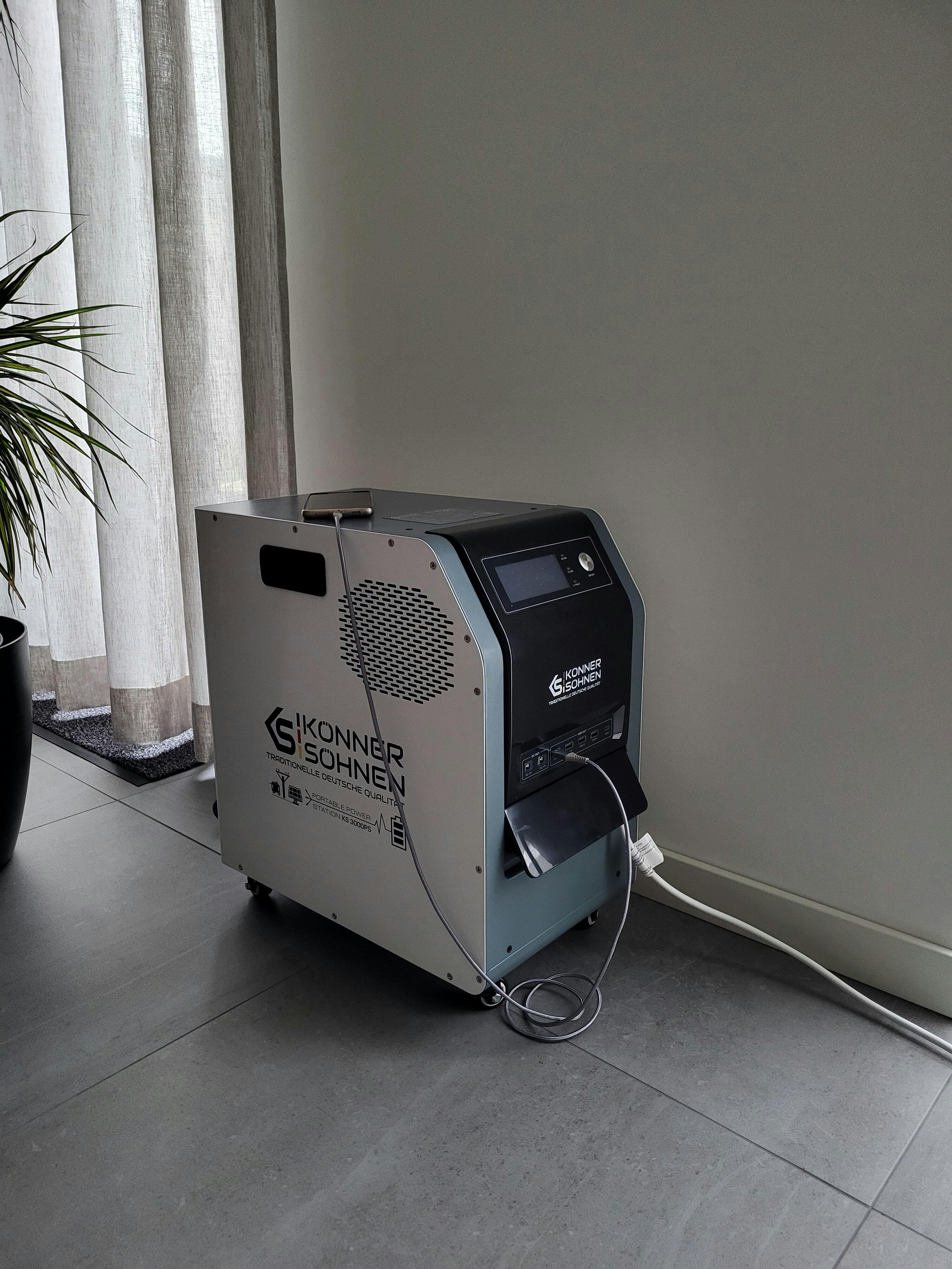 24V DC изход за генератор или батерия, Чисто синусоидален инвертор, LiFePO₄ 3.2 kWh, MPPT контролер, UPS < 10 ms, Поддръжка на Tandem Power, Бързо зареждане до 80 % за 1 час, Защита от претоварване и прегряване, LCD монитор дисплей, Колела и дръжки за мобилност |