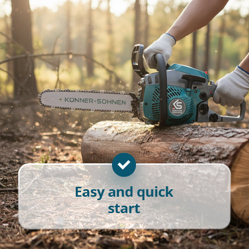• Easy and quick start – the system combines an automatic STOP button, manual fuel pump (primer), and starter with an additional spring, keeping the chainsaw ready to use at any time.