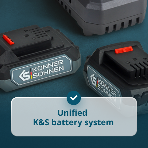 • Universal cordless kit in a case – two tools in one set: an impact drill and an angle grinder with 2 batteries and a charger for various household tasks.