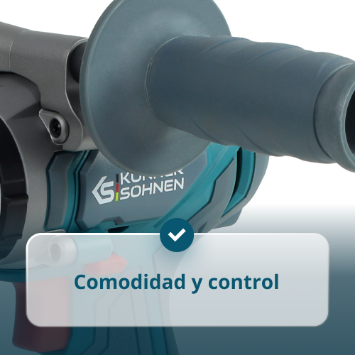 • Comodidad y control – diseño compacto y ergonómico, empuñaduras de goma, luz LED para visibilidad en la oscuridad, indicador de carga de la batería y gancho para cinturón que garantizan el máximo confort en cualquier condición.