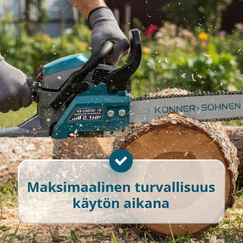 • Maximale Sicherheit bei der Arbeit – die Trägheitskettenbremse stoppt die Kette sofort bei einem Rückschlag, verringert das Verletzungsrisiko und ermöglicht sicheres Arbeiten auch bei hoher Belastung.
