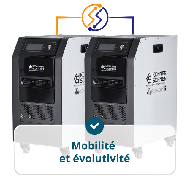 • Mobilité et évolutivité – possibilité de connecter un groupe électrogène 24V-DC ou des batteries supplémentaires, ou de combiner deux stations identiques (par exemple 2 × KS 3000PS). La conception portable crée un système hybride flexible pour différents scénarios d’utilisation – de la maison à l’entreprise.