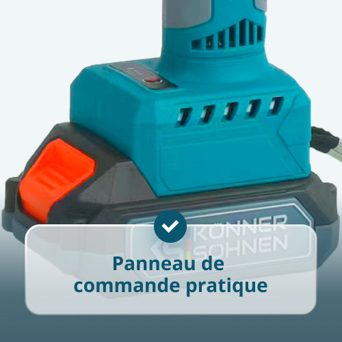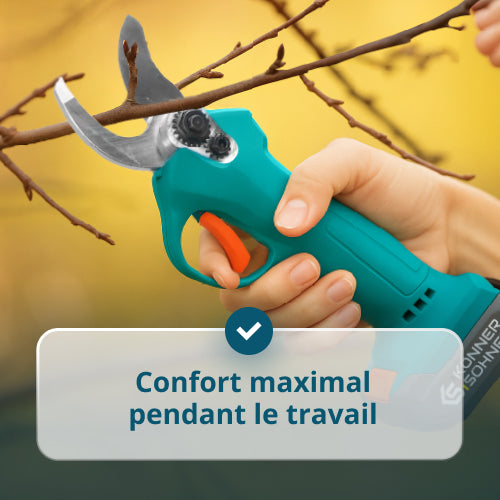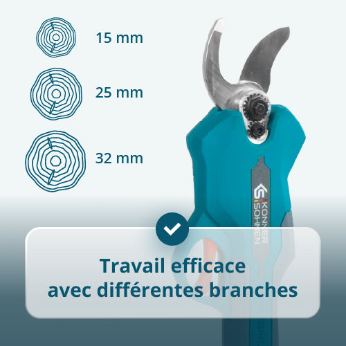 | Composants* | Sécateur à batterie, douille de clé, clé, Étui de protection pour la lame, Pierre à aiguiser, Bouteille d’huile, Chargeur 20V 2,4A KS C24A, Batterie lithium 20V 2Ah, Manuel d’instructions |