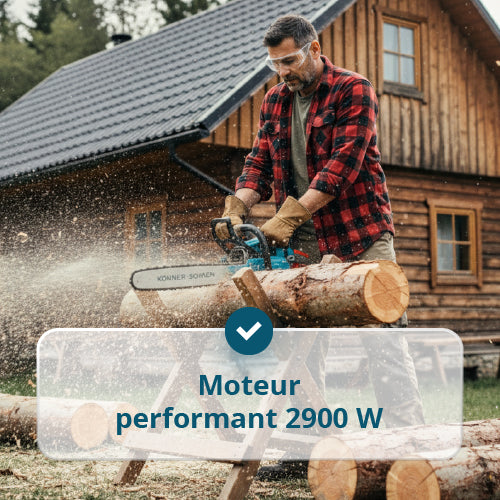• Moteur performant 2900 W – gère facilement les bois durs et les arbres de taille moyenne.