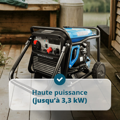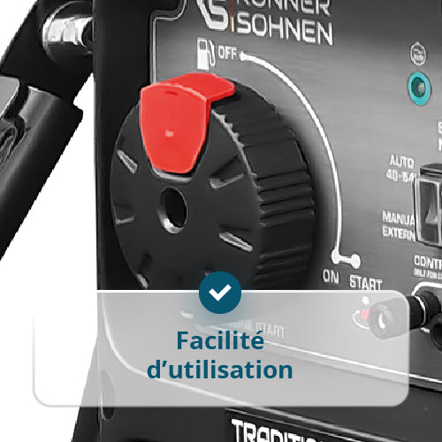 • Kit de transport – le groupe électrogène est équipé d’une poignée pliable et de roues pour un transport pratique, ce qui élargit considérablement ses possibilités d’utilisation.