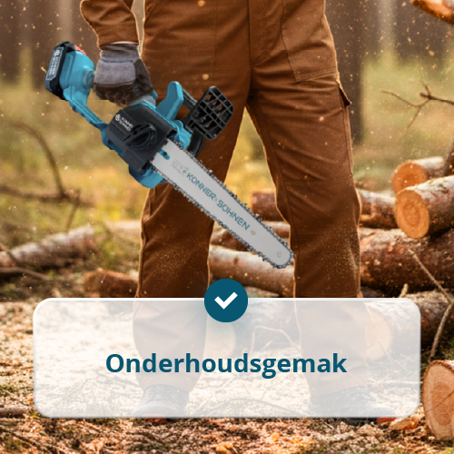 • Automatische kettingsmering – zorgt voor constante smering tijdens gebruik, vermindert slijtage en verlengt de levensduur van de snijcomponenten (ketting en geleiderail).
