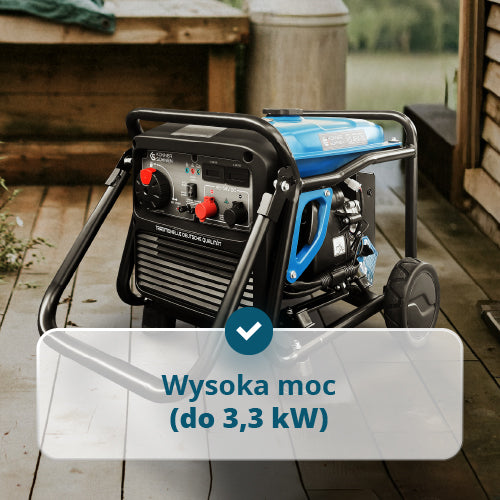 • Zestaw transportowy (składany uchwyt i koła) – generator można łatwo przemieszczać, co znacznie zwiększa możliwości jego zastosowania.
