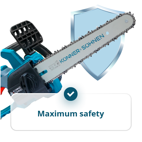 | Ausrüstung | Mini-Kettensäge, Verpackung, Anleitung, 2×Führungsschiene 12" (30 cm), 2×Kette, Ladegerät für 20V Li-Ion Akku KS C45A, 20V 4Ah Li-Ion Akku |