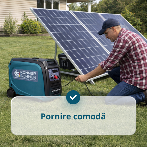 • Funcționare automată – în modul AUTO, generatorul monitorizează independent tensiunea bateriei, pornește atunci când aceasta scade sub 50V și se oprește atunci când tensiunea de ieșire atinge 54,5 ± 0,5 V și curentul scade sub 20A.