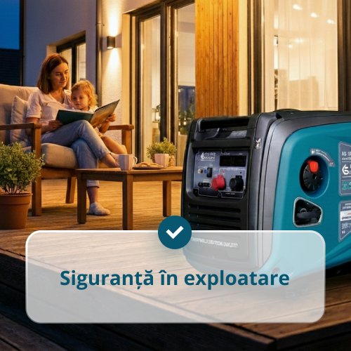 • Carcasă fonoizolată – reduce semnificativ nivelul de zgomot în timpul funcționării și astfel diminuează poluarea fonică a mediului.