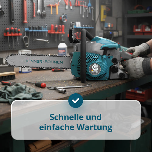 • Snabb och enkel underhåll – "verktygsfri" kedjespänningsmekanism möjliggör justering och byte av kedjan utan skiftnycklar eller skruvmejslar, vilket sparar tid.
