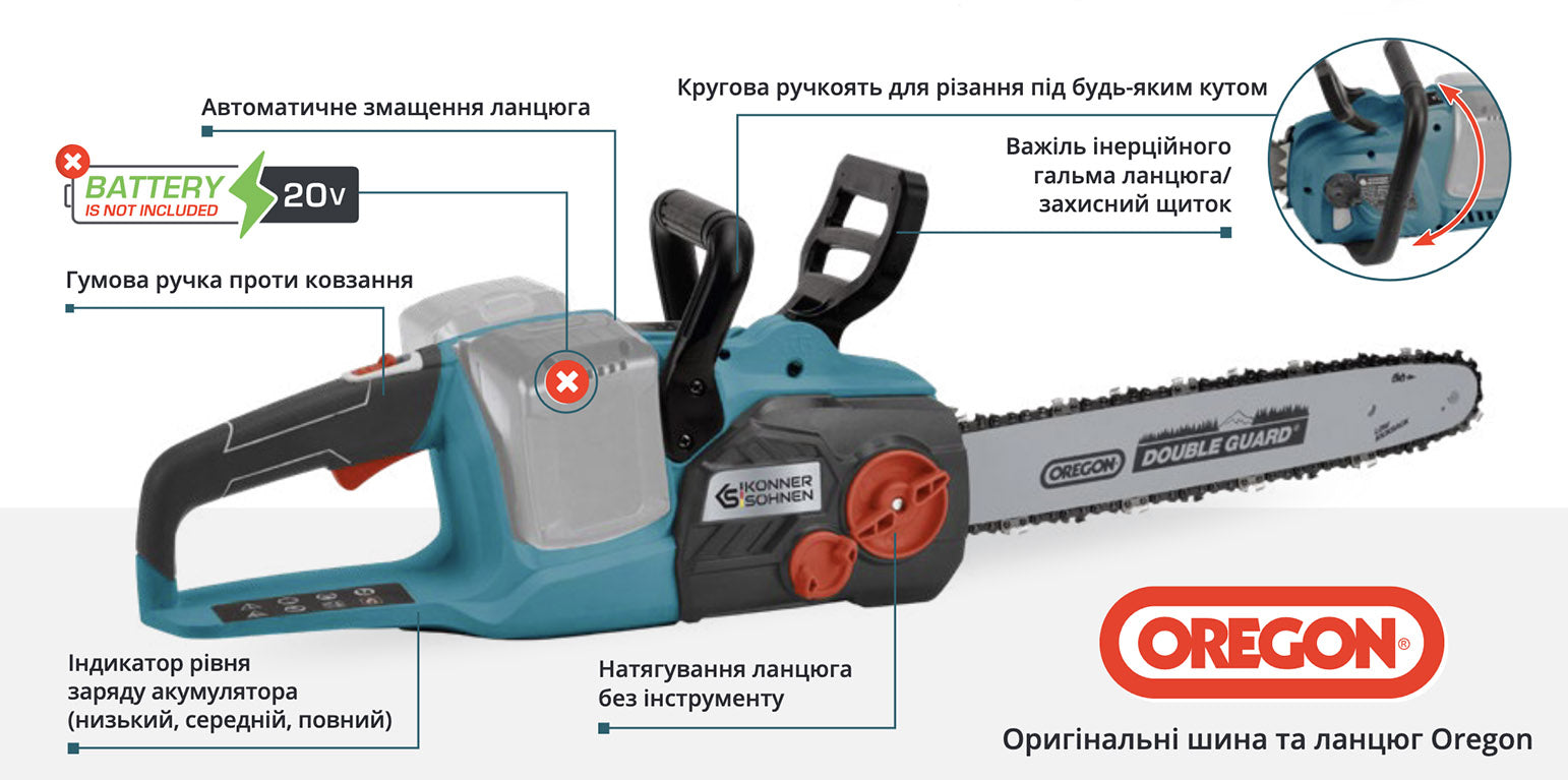 | Акумулятор та зарядний пристрій | не входять до комплекту поставки |