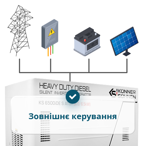 • Зовнішнє керування —  для підключення зовнішніх пристроїв управління, що дозволяє здійснювати запуск\зупинку генератора та інтеграцію з автоматичними системами, які працюють через сухі контакти: сонячні інвертори, системи безперебійного живлення та інші.